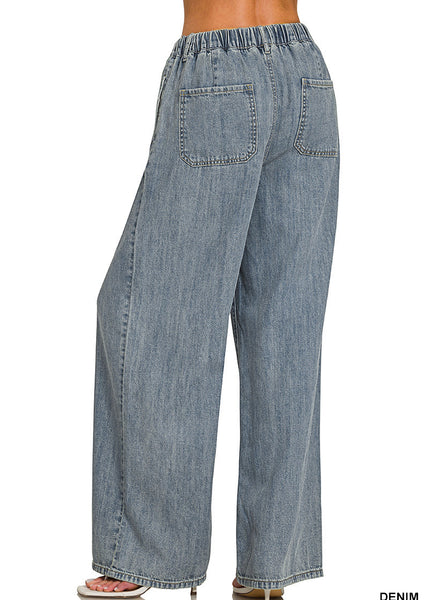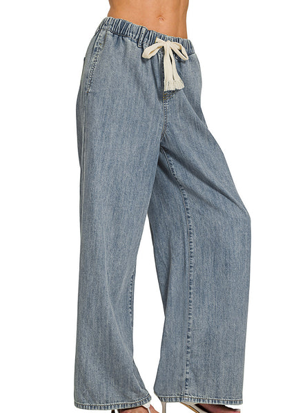Slip into comfort and let your style wander with our Daydream Believer Soft Denim Pants. Made from lightweight, ultra-soft denim with a relaxed silhouette, these pants are made for those who chase comfort without sacrificing style. The adjustable drawstring waist and easy pull-on design make them perfect for everyday wear — from lazy mornings to spontaneous adventures.