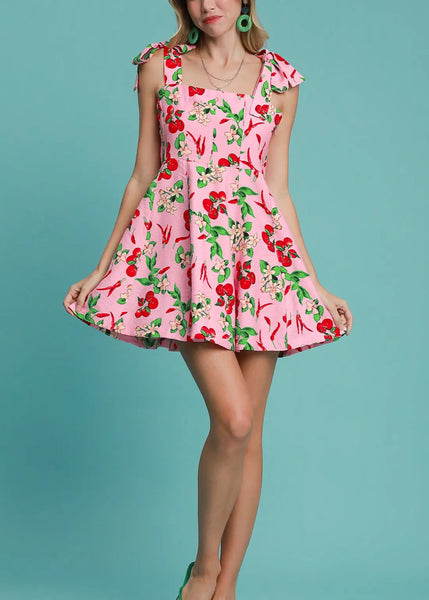 Sweet with a little sass, the Wild Cherry mini dress is made for turning heads. Featuring flirty tie straps, this dress brings effortless charm with just the right amount of attitude. The lightweight feel and easy silhouette make it perfect for sunny days, weekend plans, or a spontaneous night out.