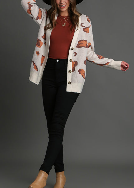 Unleash your bold side with Roar, the perfect mix of cozy comfort and fierce style. This button-down cardigan features a classic fit with soft knit fabric and a striking leopard print that makes a statement wherever you go. Easy to layer over tees, blouses, or dresses, it’s the ultimate sweater for adding a playful, confident touch to your wardrobe.